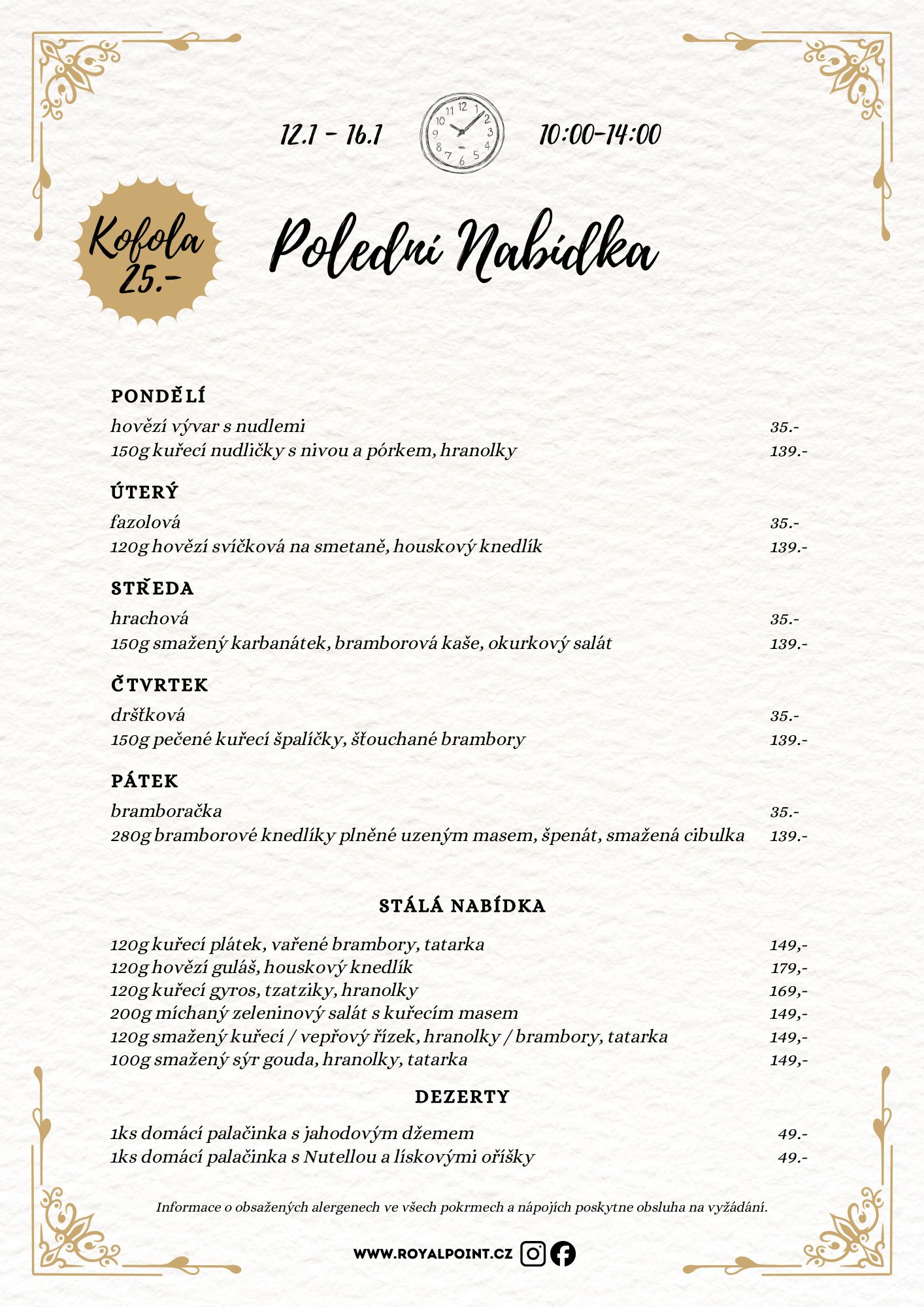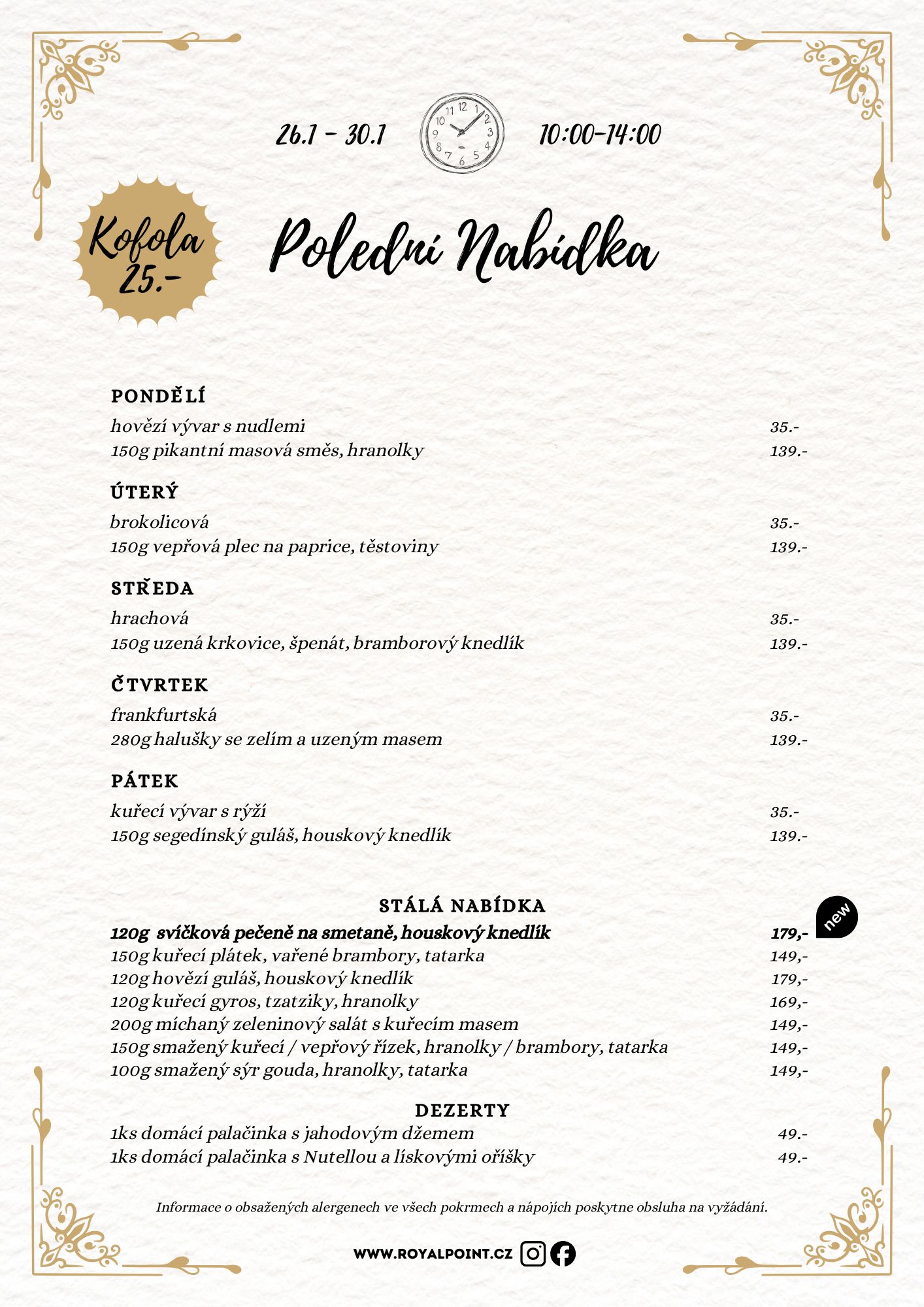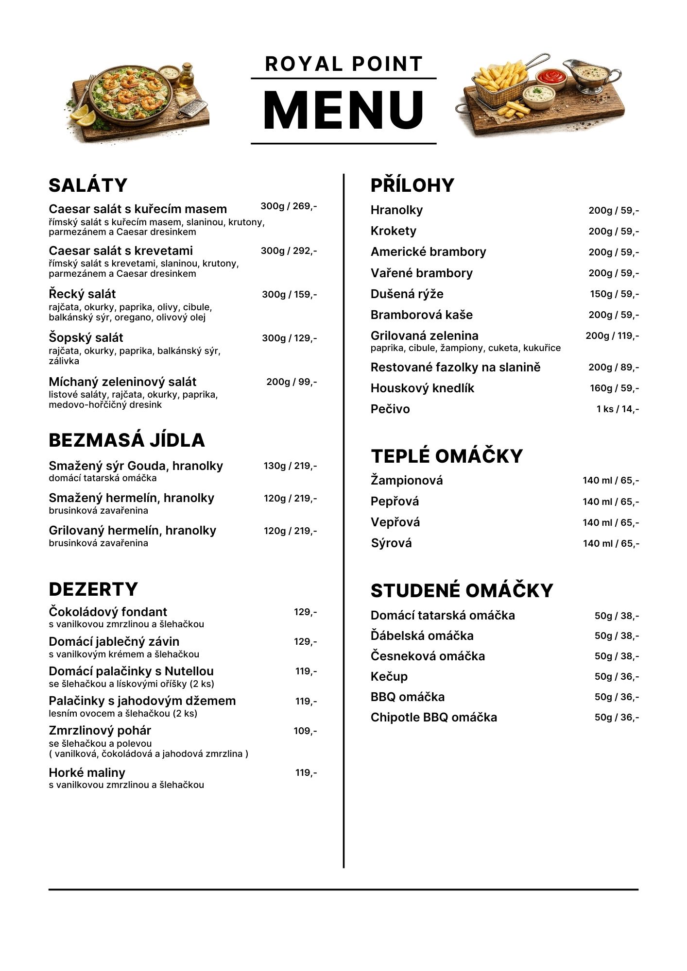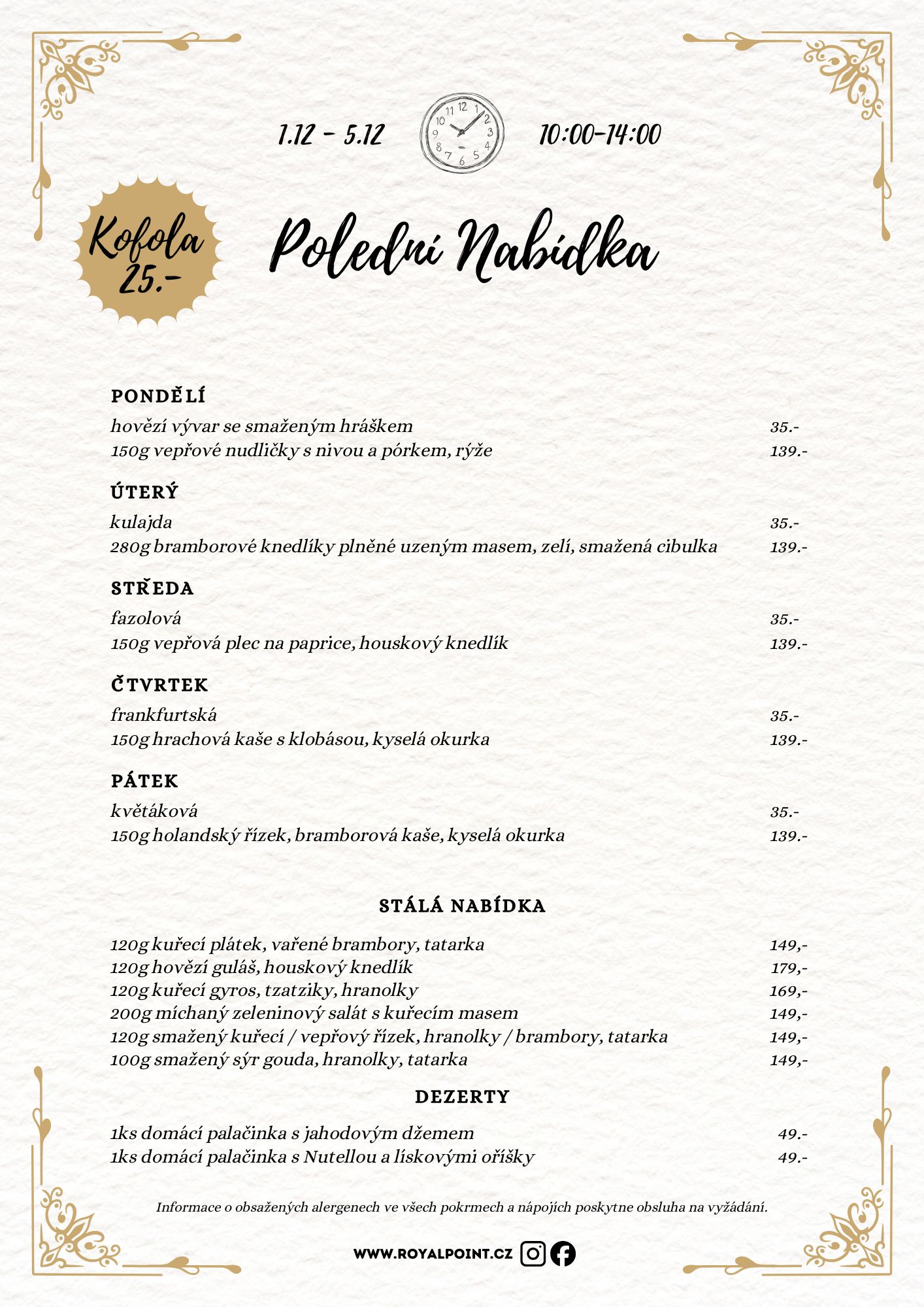 Našim hostům servírujeme jen tu nejvyšší kvalitu rozmanité tradiční české kuchyně. Čerstvé dezerty a s láskou připravené si u nás můžete vychutnat nejen v odpoledních hodinách.